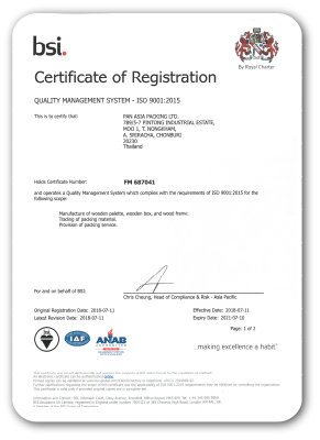 ใบรับรองมาตรฐานการจัดการสิ่งแวดล้อม ISO14001 : 2015